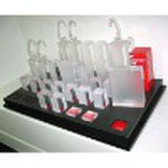 The main product lines of our company include acrylic display racks for different kinds of items such as watches, computers, eyeglasses, jewelries, cellular phones, cigarettes, wines, and cosmetics. We also use acrylic to manufacture household and bathroom accessories, shoe racks, CD racks, picture frames, signs and labels, medals and trophies, restaurant manual stands, information decks, and light boxes.
